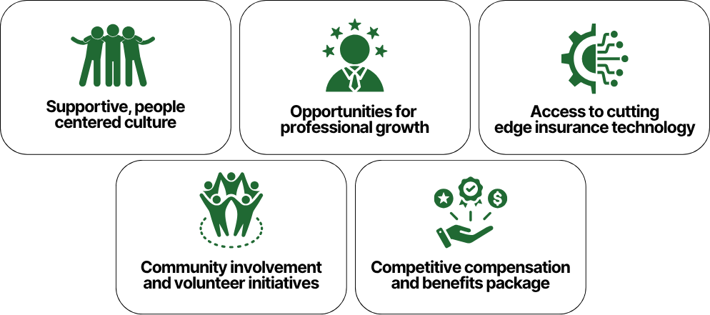 We’re passionate about protecting what matters most and supporting the people and businesses we serve. Join a team that values relationships, encourages growth, and works together to make a difference.